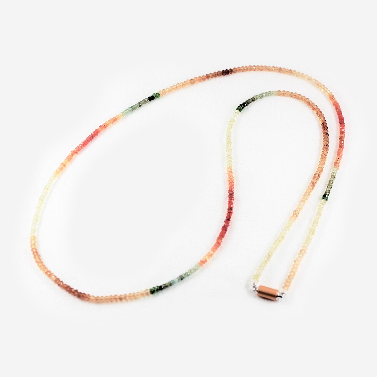 フィンセント・ファン・ゴッホの代表作 「ひまわり」 は、7枚制作されており、 青の背景と黄色を用いた作品が存在しています。 このネックレスでは、 ゴッホの代名詞ともいえる黄色 を表現するのは、 シトリンとレモンクオーツ。そして、 カーネリアンやトルマリンなど、色鮮やかな宝石たちを 使用しました。ゴッホの愛した美しい色彩 が 、 身に着ける方を輝かせます。