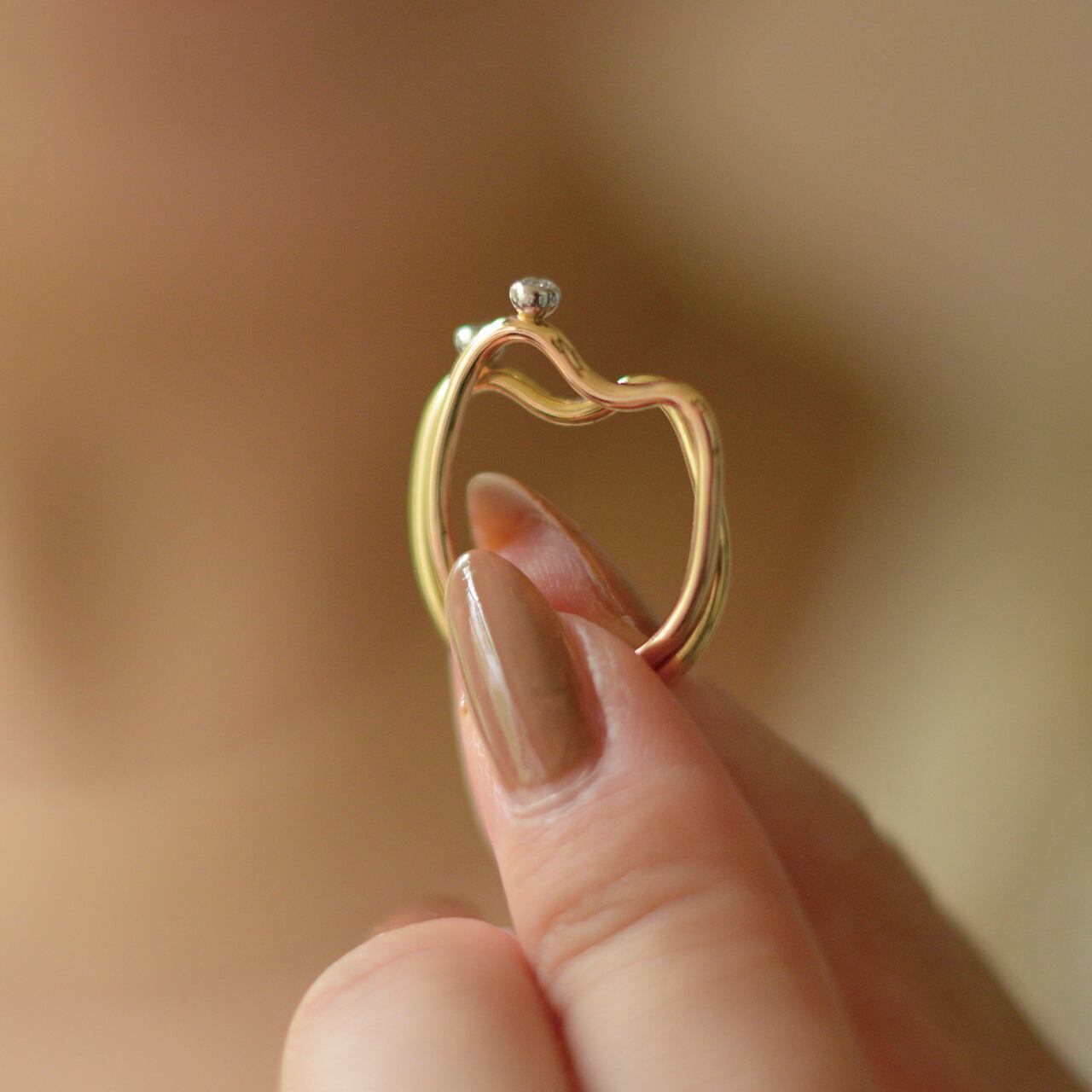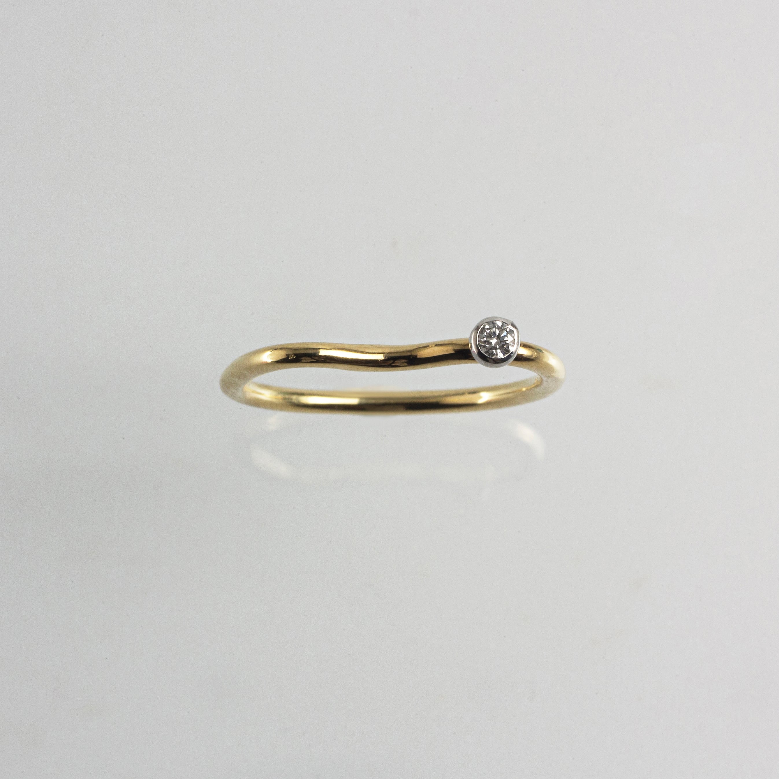 自然の中にある曲線をコンセプトに、ゆるやかなウェーブラインでMを表現いたしました。ちょこんとのっかったダイヤが可愛らしく、シンプルながらも遊び心ある仕上がりです。単品でも、重ね付けしても手元が美しく上品でお洒落な印象になります。真円ではないデザインは、隙間があり複数の指にフィットしますので、実用性もあります。Silverの商品はデザインはそのままに地金をK18厚メッキをすることで変色が起こりにくい高品質な素材になります。