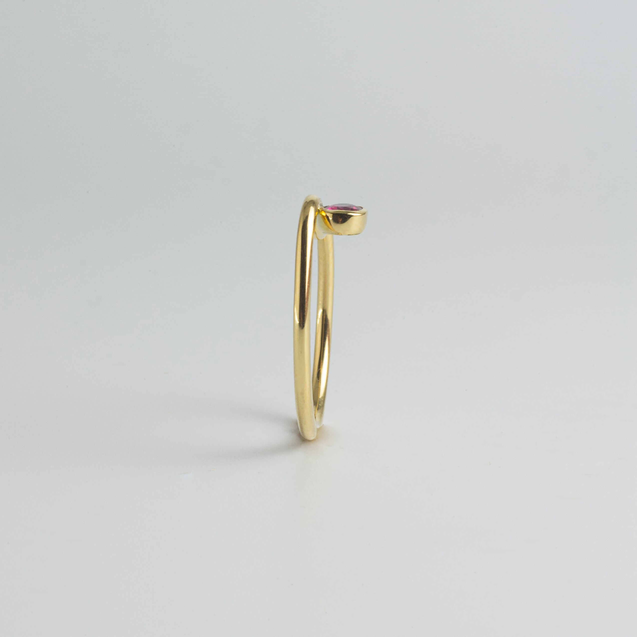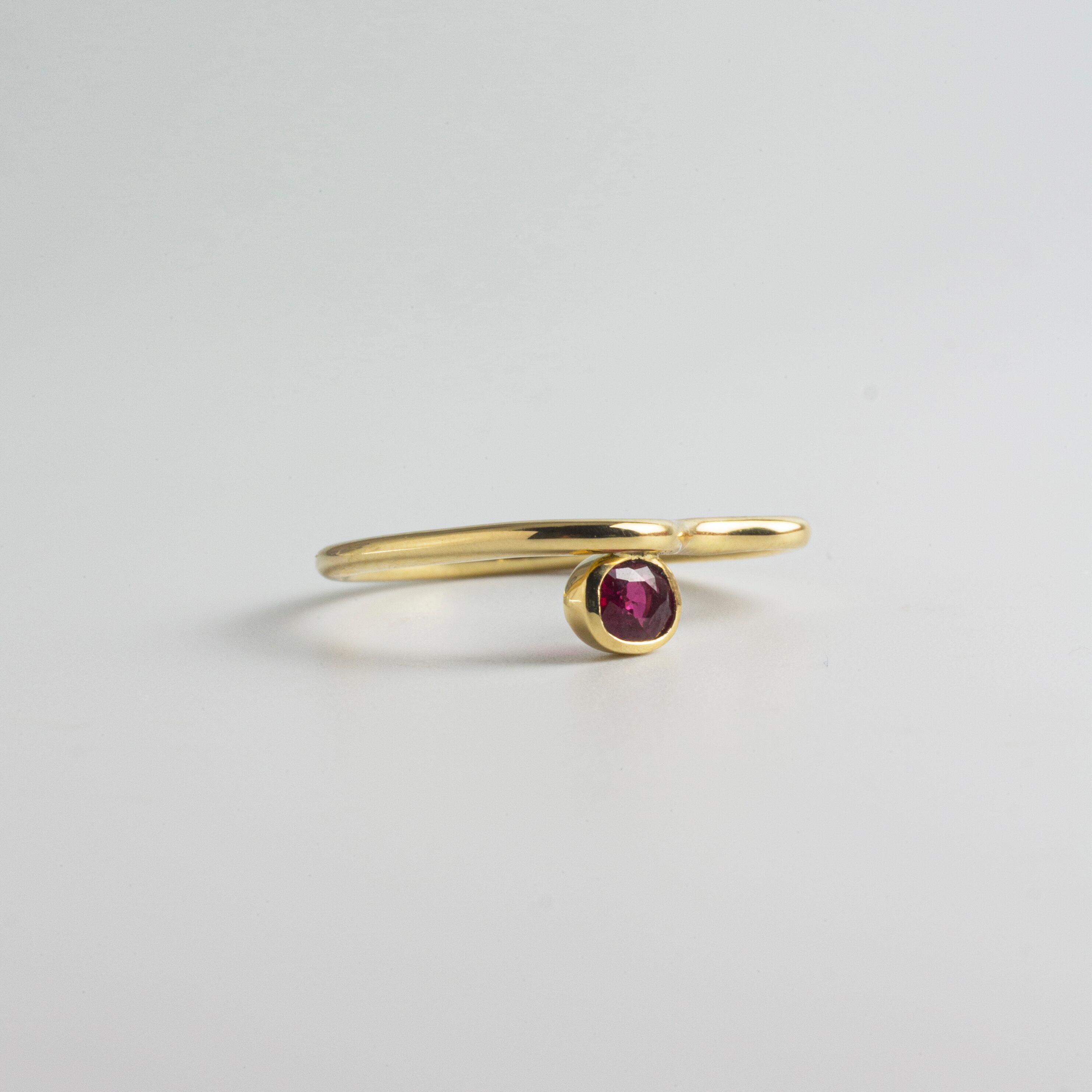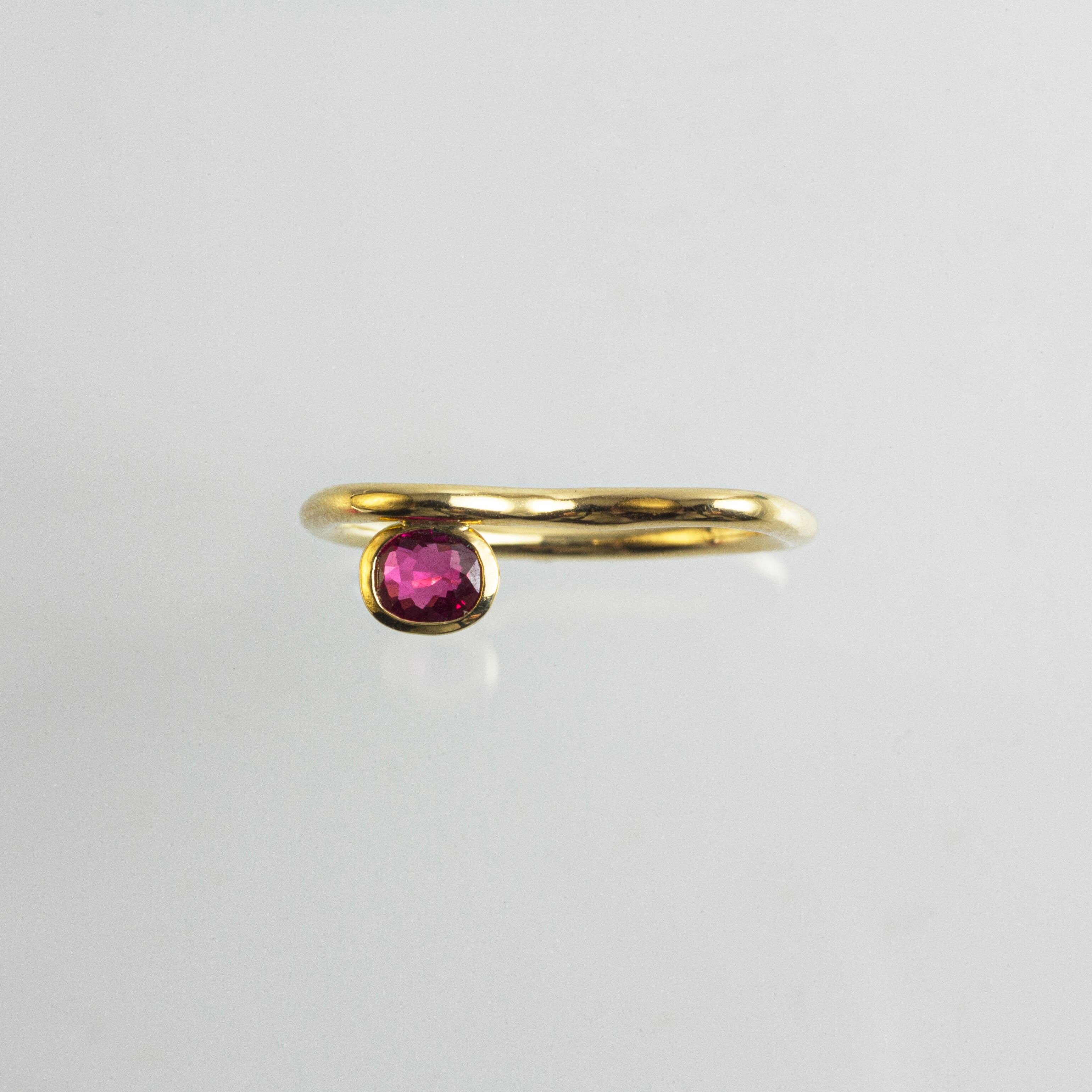 自然の中にある曲線をコンセプトに、ゆるやかなウェーブラインでMを表現いたしました。ルビーを浮かせる様に取り付けて、他にはない可愛らしいデザインが魅力的です。単品でも、重ね付けしても手元が美しく上品でお洒落な印象になります。真円ではないデザインは、隙間があり複数の指にフィットしますので、実用性もあります。
