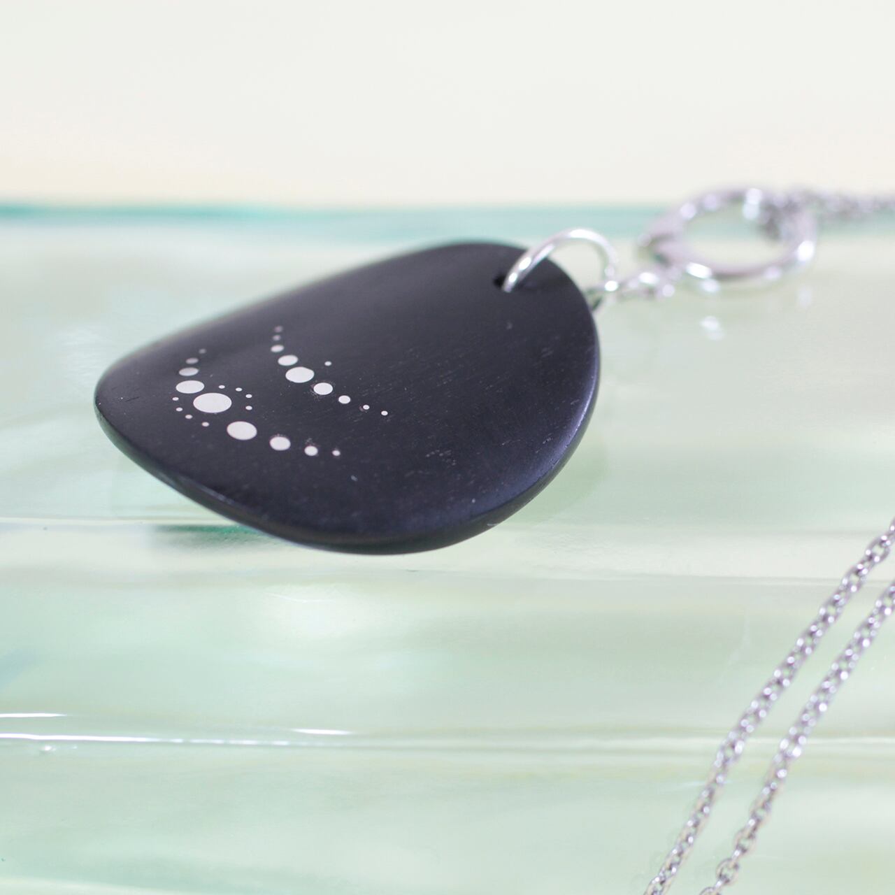 傷があるため、クラリネット・ピッコロになれなかったアフリカンブラックウッド(グラナディラ)を再活用し、新感覚の黒いジュエリーへアップサイクルしました。アフリカンブラックウッドは非常に硬く艶やかな漆黒が美しい銘木です。加工が難しい為、限られた職人の技巧により高品質ジュエリーへ生まれ変わりました。アフリカンブラックウッドは準絶滅危惧種に指定されている希少木材になりました。ジュエリー通じて環境問題やそれを支える方々の取り組みを知っていただき、自然と支援に繋がるように目指しております。