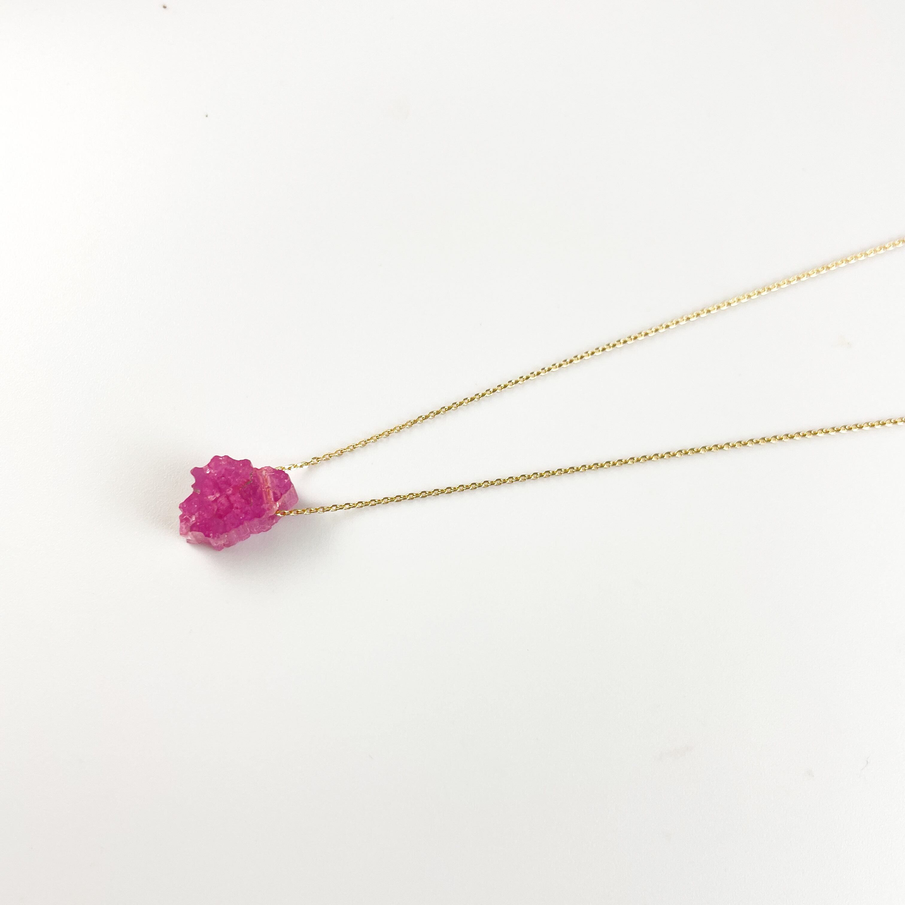 原石自体に穴を開けて、K10YGのチェーンを通しました。