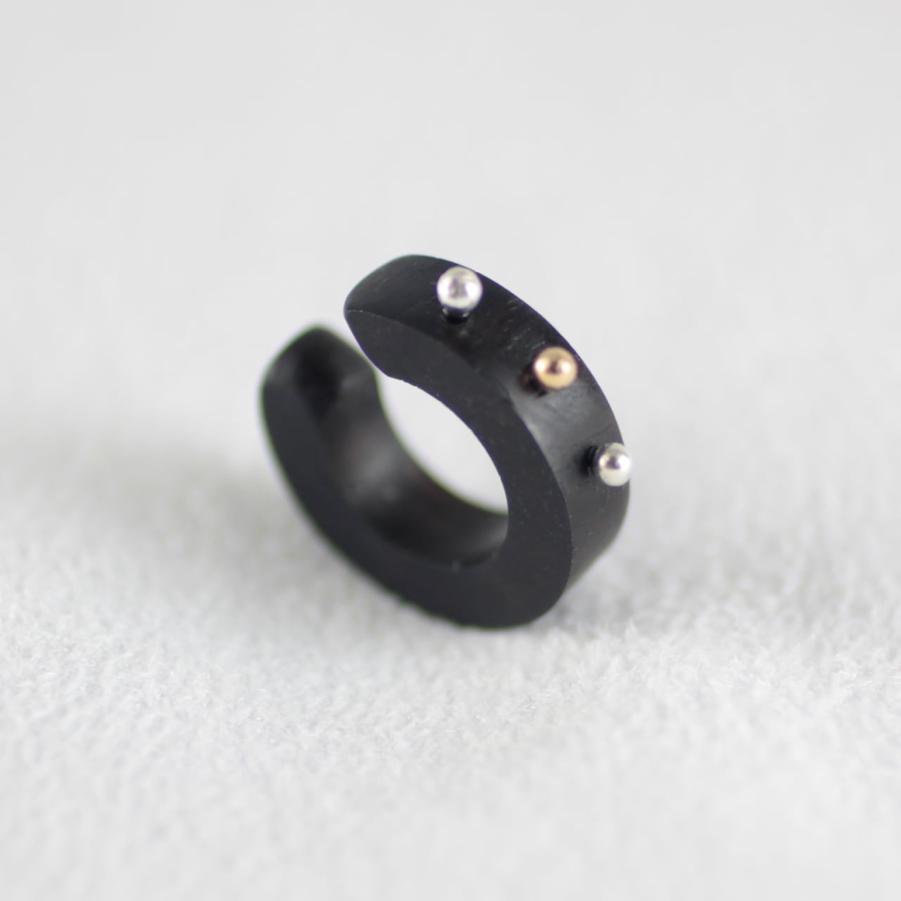 傷があるため、クラリネット・ピッコロになれなかったアフリカンブラックウッド(グラナディラ)を再活用し、新感覚の黒いジュエリーへアップサイクルしました。アフリカンブラックウッドは非常に硬く艶やかな漆黒が美しい銘木です。加工が難しい為、限られた職人の技巧により高品質ジュエリーへ生まれ変わりました。アフリカンブラックウッドは準絶滅危惧種に指定されている希少木材になりました。ジュエリー通じて環境問題やそれを支える方々の取り組みを知っていただき、自然と支援に繋がるように目指しております。