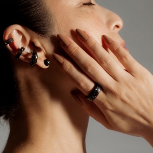 角がシャープなラインのデザインに、ダイヤをセットしたイヤーカフ。漆黒の木の光沢感のあるアフリカンブラックウッドにダイヤモンドの輝きとイエローゴールドのつやめきが、シンプルながらも存在感があるイヤーカフです。普段使いから特別なシーンまで幅広くお使いいただけます。
