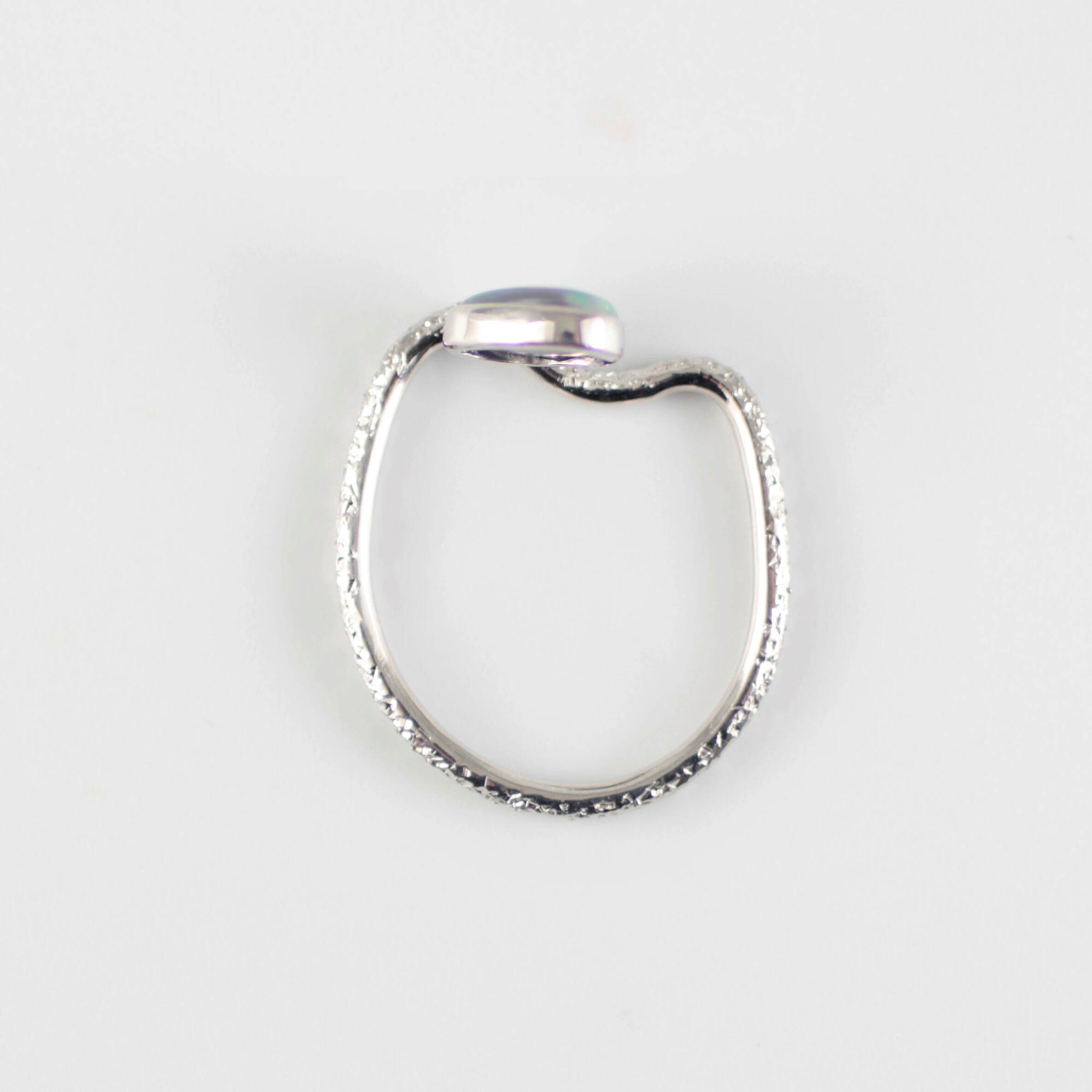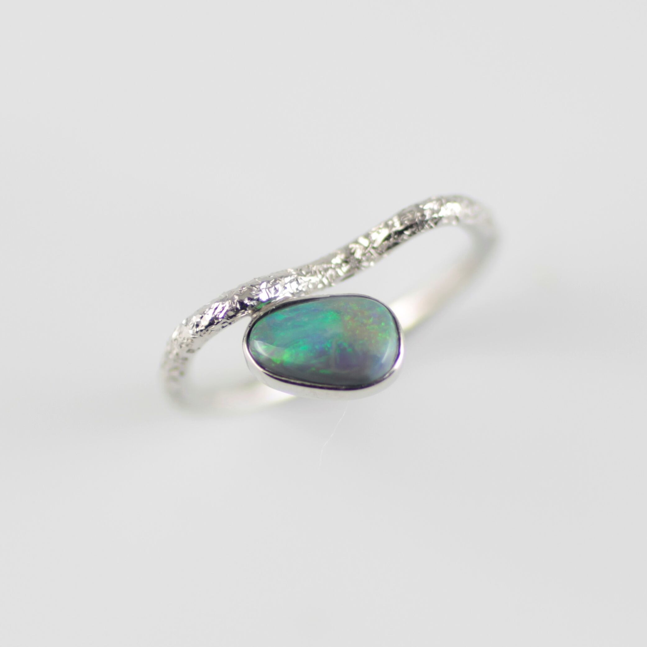 自然の中にある曲線をコンセプトに、ゆるやかなウェーブラインでMを表現いたしました。ちオパールを浮かせる様に取り付けた、他にはない可愛らしいデザインが魅力的です。単品でも、重ね付けしても手元が美しく上品でお洒落な印象になります。真円ではないデザインは、隙間があり複数の指にフィットしますので、実用性もあります。