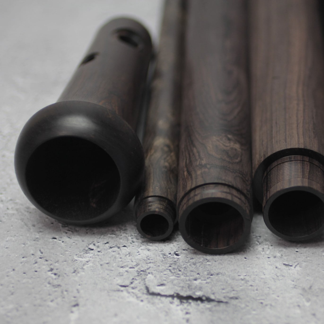 アフリカのタンザニアが産地で「準絶滅危惧」に分類される希少な木材アフリカン・ブラックウッド通称グラナディラは、高比重で硬く、音の響きが良いことから世界中の木管楽器に利用されています。